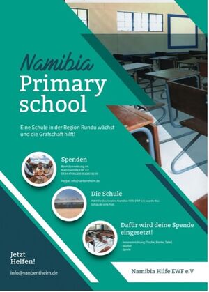 Spenden Banküberweisung an: Namibia Hilfe EWF e.V DE84 4769 1200 0013 5482 00 Paypal: info@vanbentheim.de